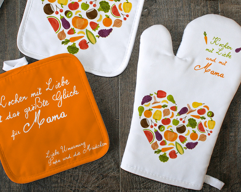 Personalierbare Ofenhandschuh und Topflappen - Kochen mit Liebe